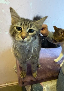 Aiko is a long-haired tabby with the softest fur and the gentlest soul. Unlike his fierce mama, he carries only tenderness in his heart. He adores toys, cozy naps, good food, and most of all — affection. The moment you hold him, he melts into loud, happy purrs, never a hiss, never a scratch.