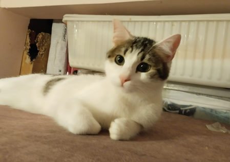 Miso is one of the five kittens born to Marmaray, the brave mother cat who gave birth beside the escalators of Bostancı Marmaray Station. From the beginning, Miso showed a much softer and more delicate nature than her siblings. She is a gentle, fragile little soul who prefers calm spaces and quiet affection over busy environments.