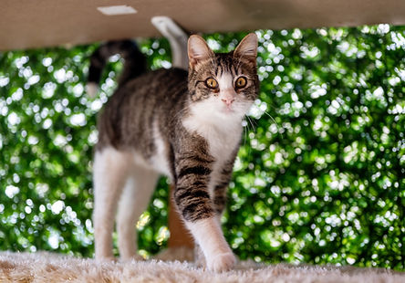Marmy is Marmaray’s baby, born safely in our care and raised indoors. At six months old, he is a gentle, affectionate boy with a very soft heart. He gets along beautifully with other cats and has the sweetest, calm nature.